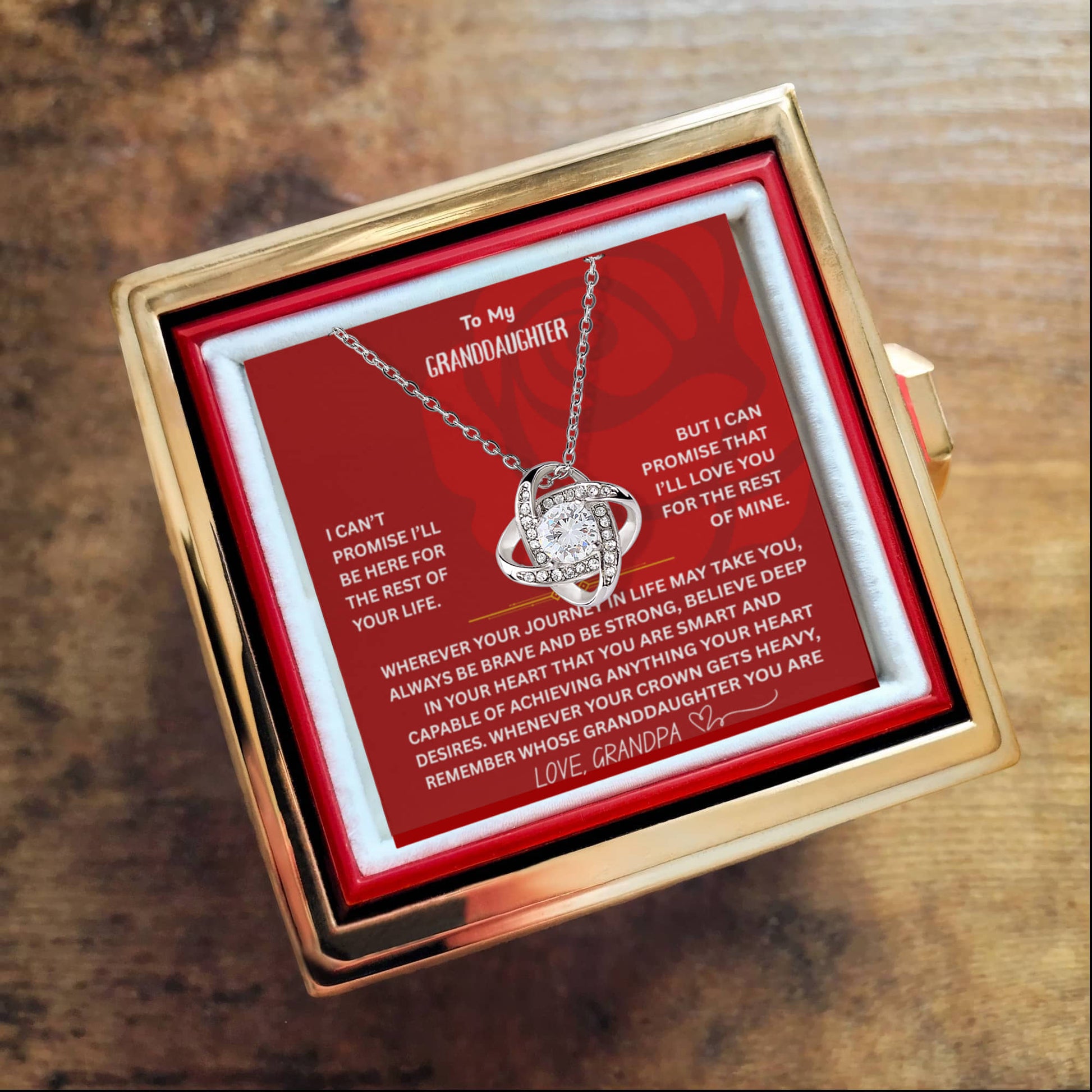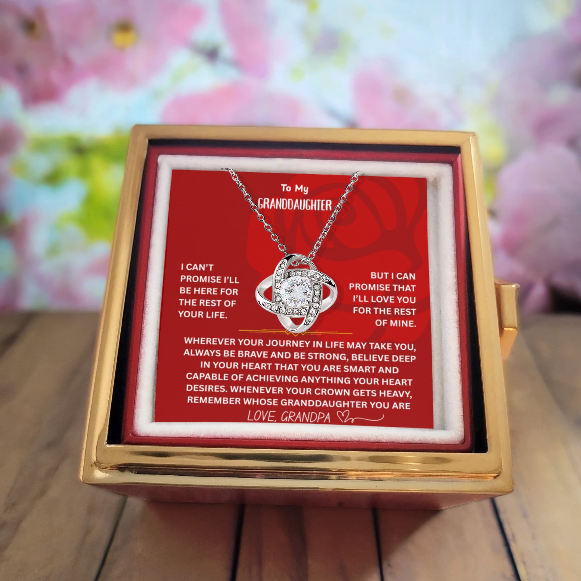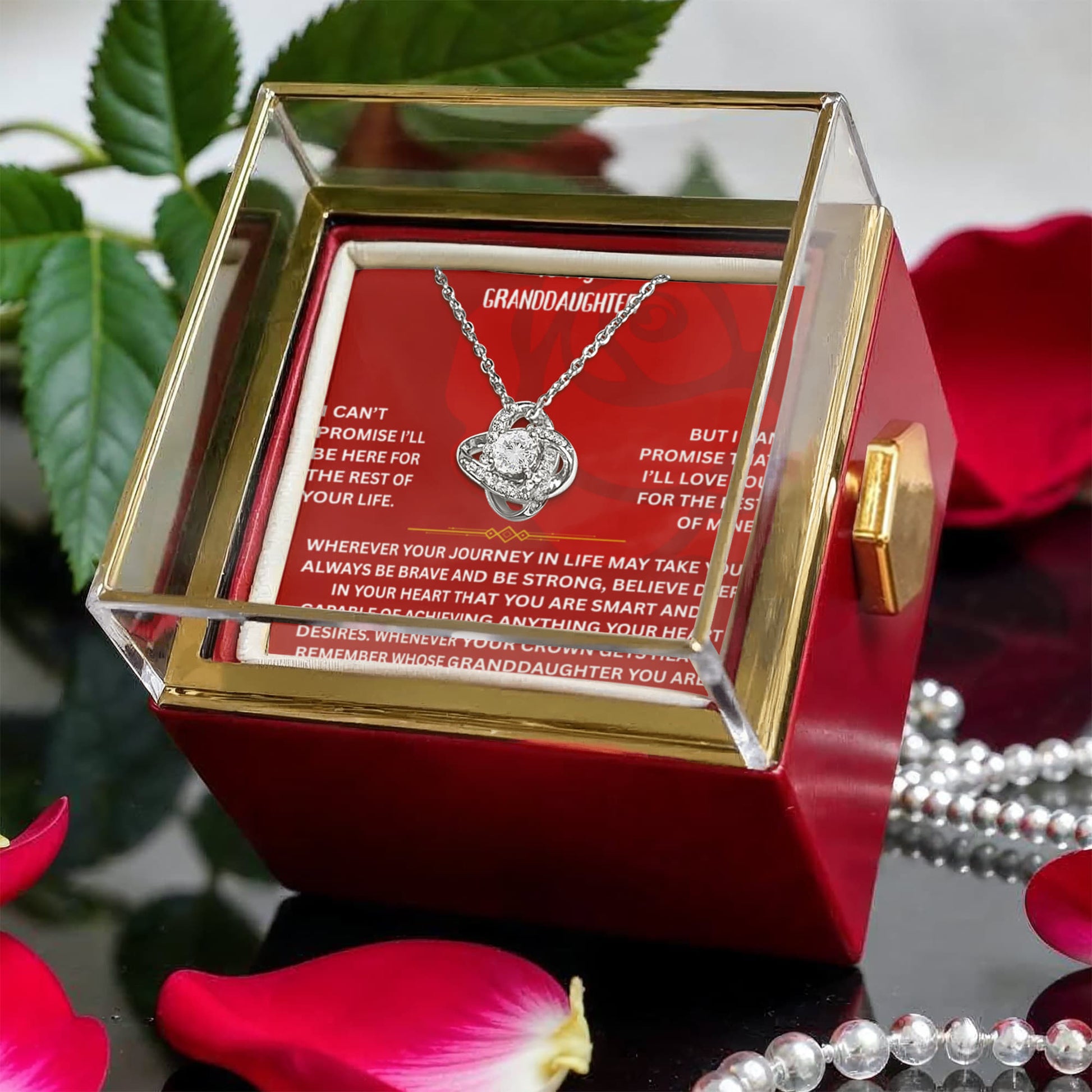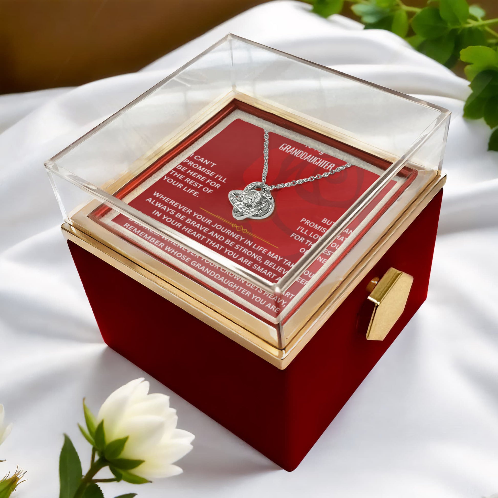 ๐ To My Granddaughter โ Love Knot Necklace with Rotating Rose Gift Box