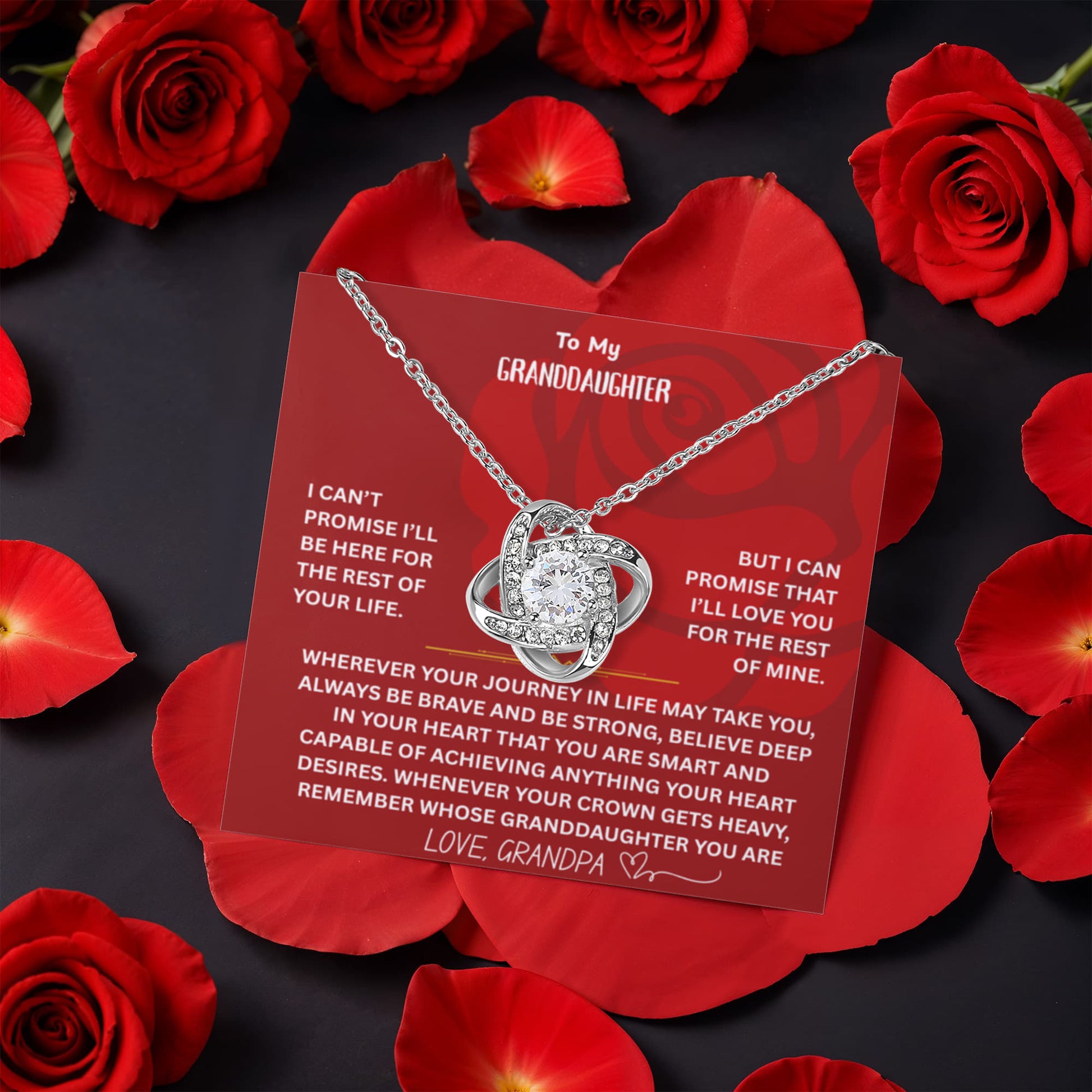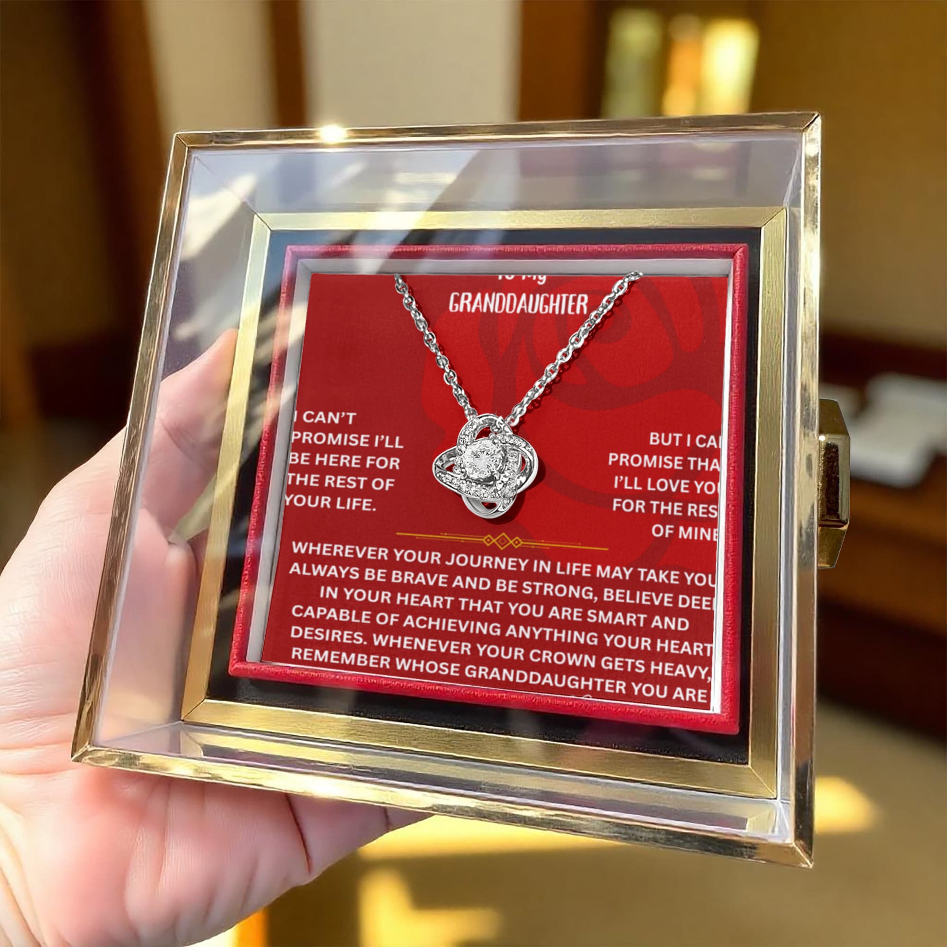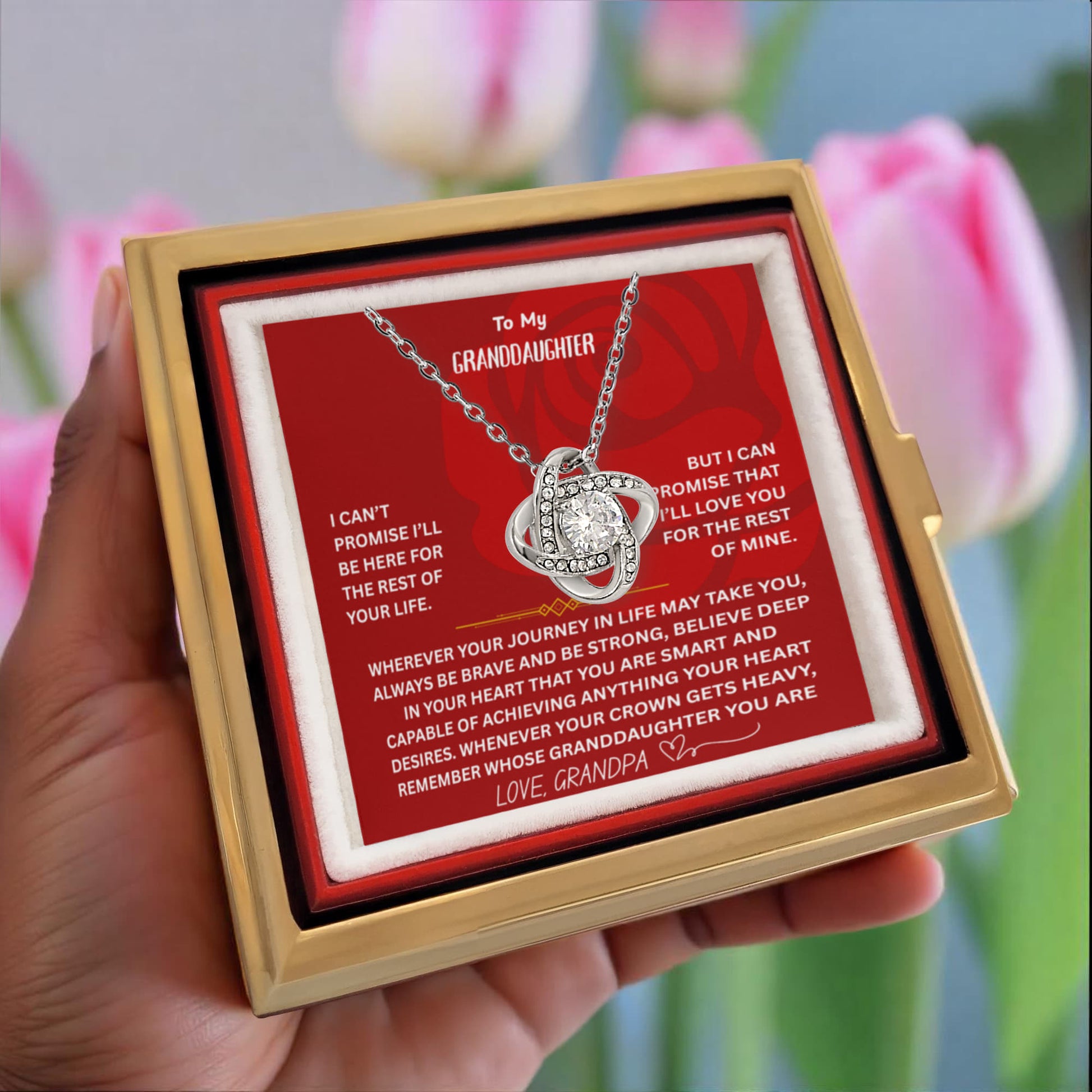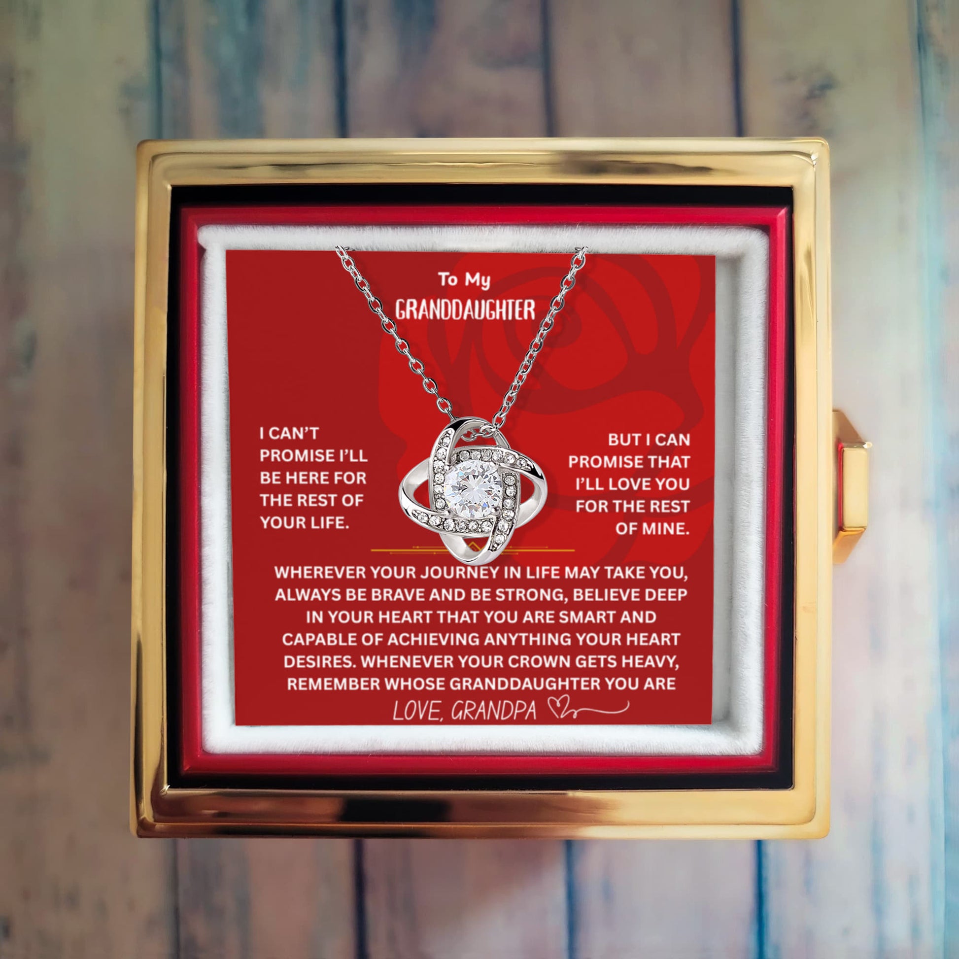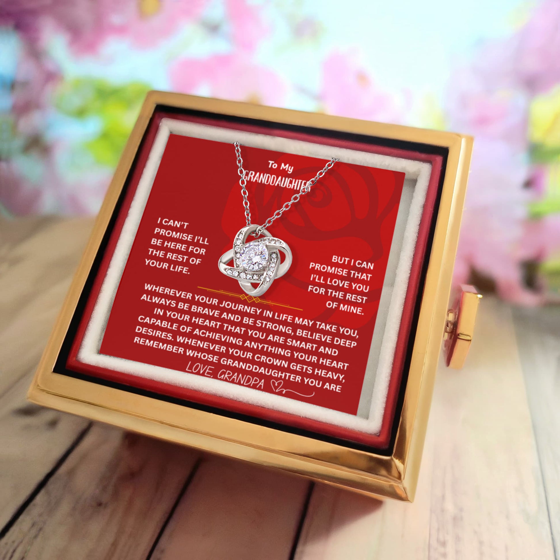 ๐ To My Granddaughter โ Love Knot Necklace with Rotating Rose Gift Box