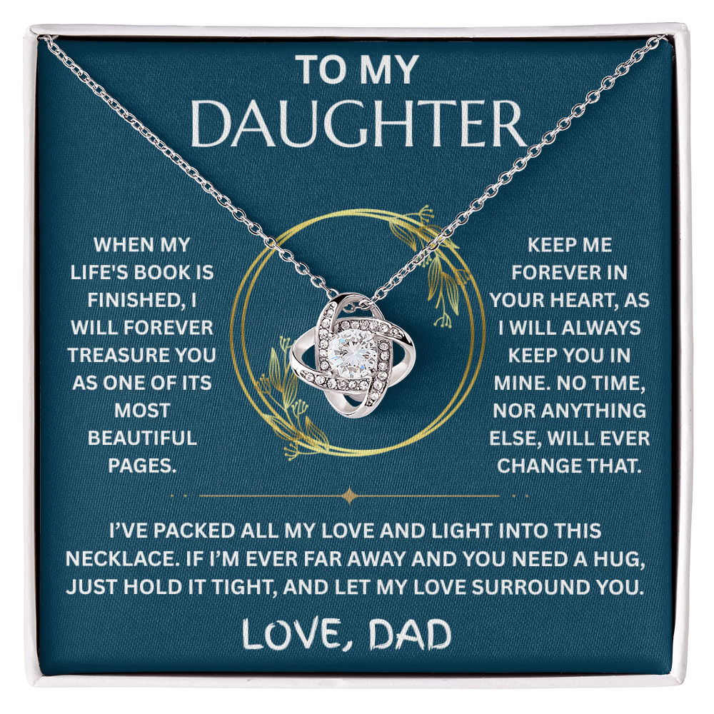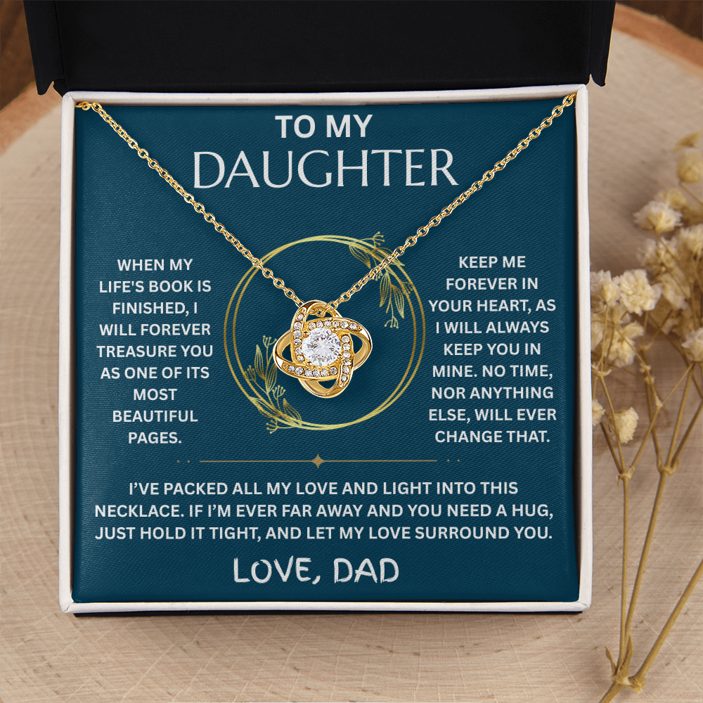 Surprise your daughter with a gift that speaks straight from the heart. The To My Daughter - Love Knot Necklace is more than just jewelry—it's a lasting symbol of your love, pride, and unbreakable bond.