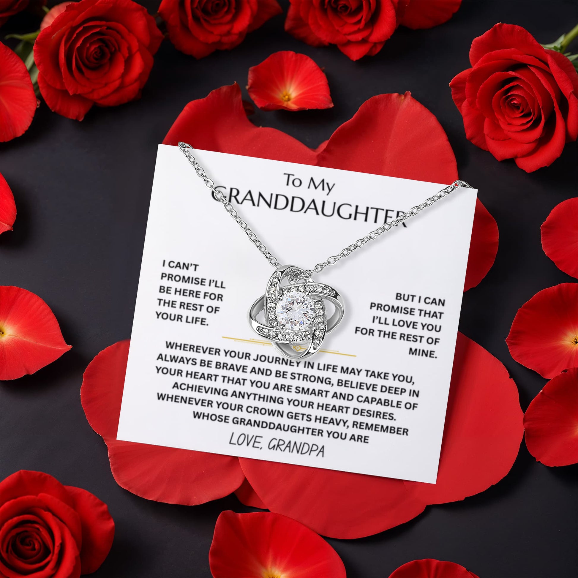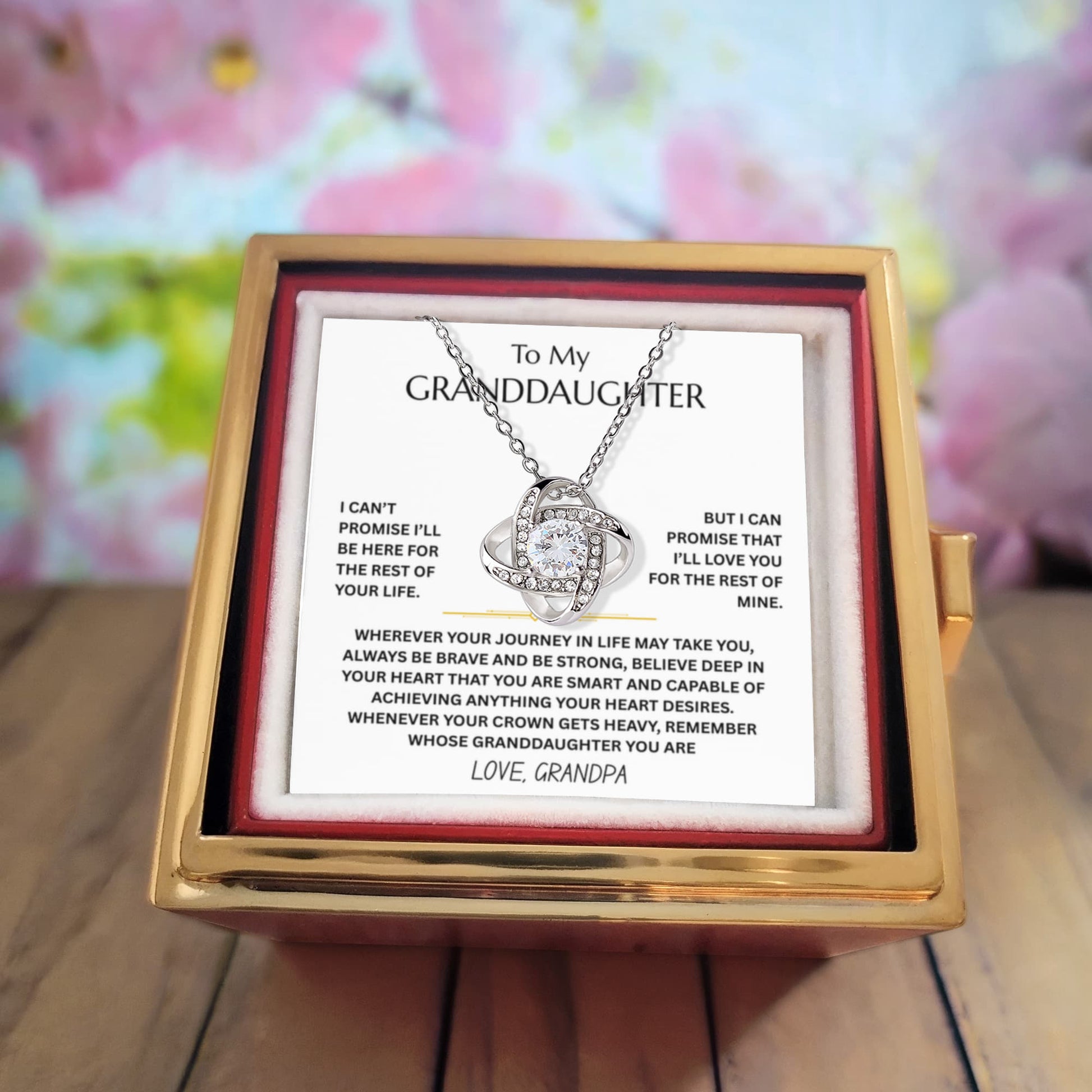 💖 To My Granddaughter – Love Knot Necklace with Rotating Rose Gift Box