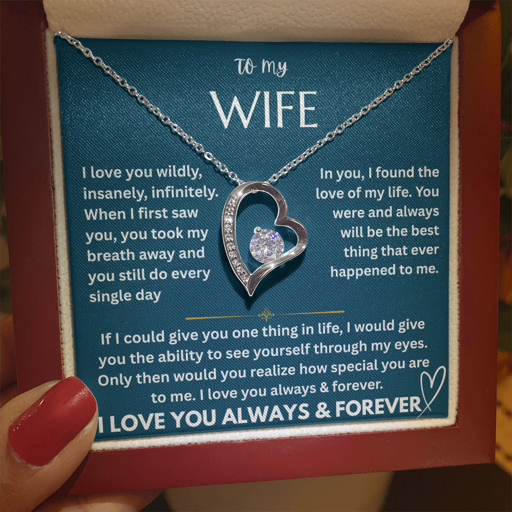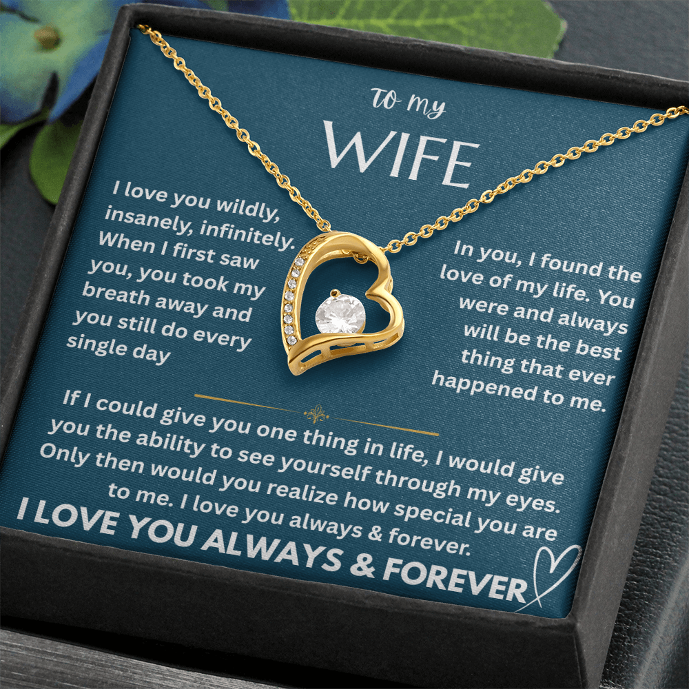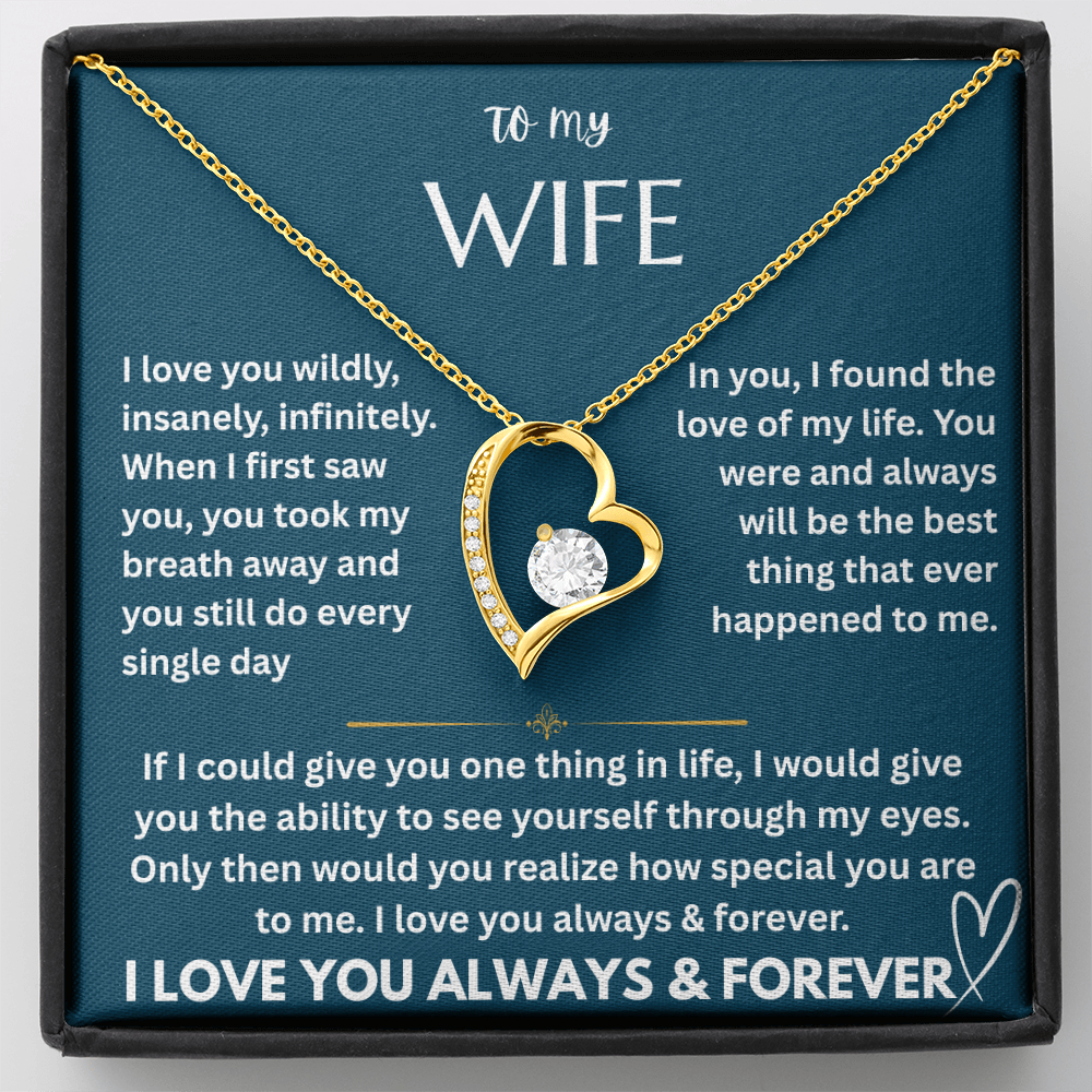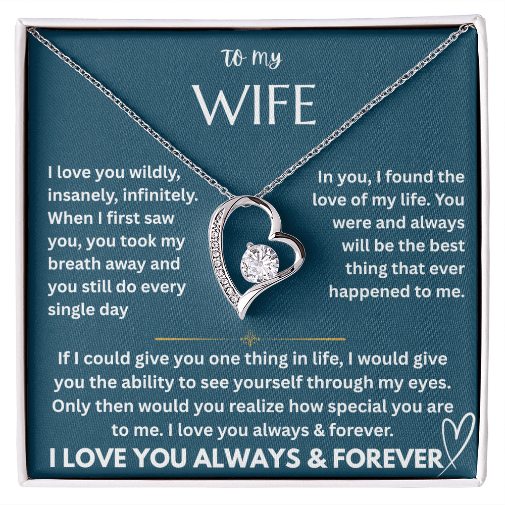 "TO MY WIFE - I love you wildly, insanely, infinitely. When I first saw you, you took my breath away and you still do every single day. In you, I found the love of my life. You were and always will be the best thing that ever happened to me. If I could give you one thing in life, I would give you the ability to see yourself through my eyes. Only then would you realize how special you are to me. I love you always & forever."